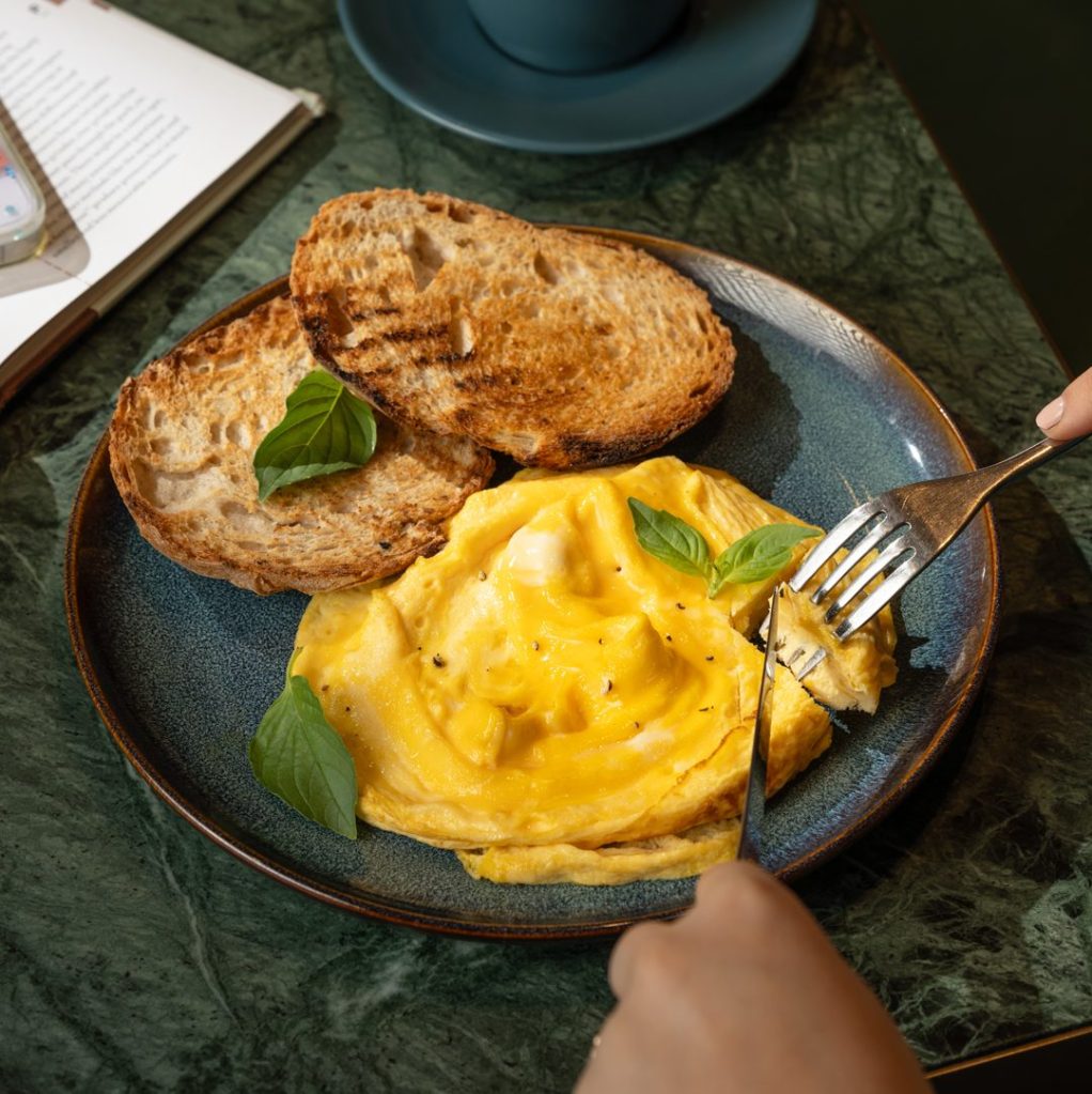 SIGNATURE SCRAMBLED EGGS SERVED ON TOASTED SOURDOUGH