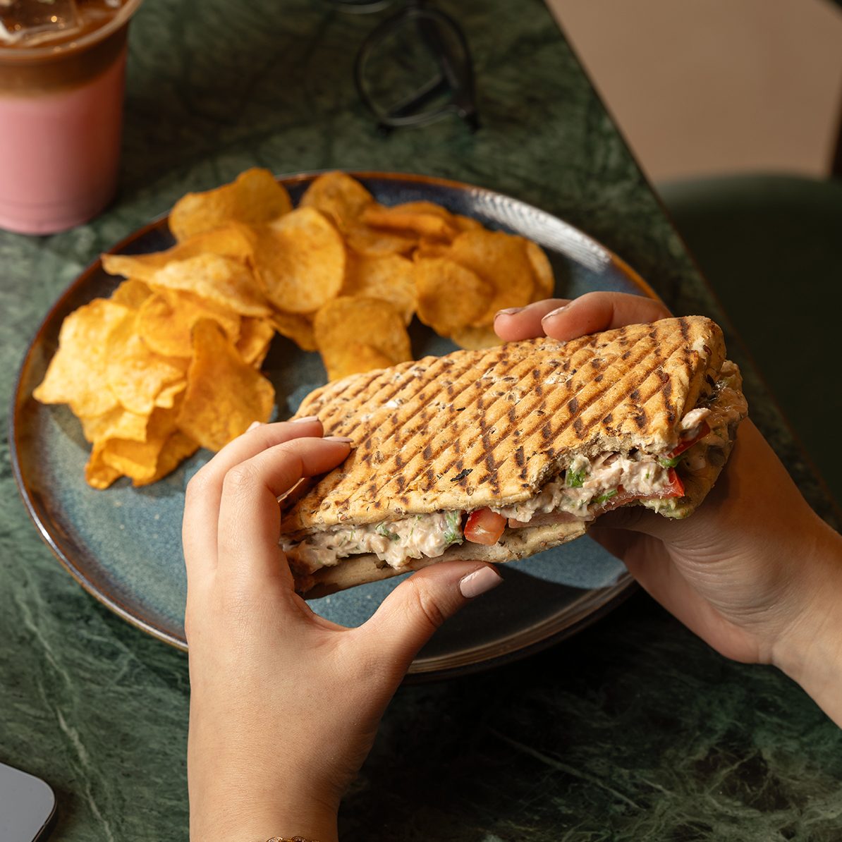 TUNA, AVOCADO, TOMATOES, PESTO, PANINI